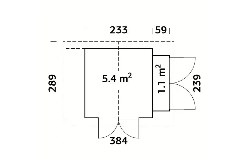 Dimensioni esterne complessive del tetto: 384 x 289 cm