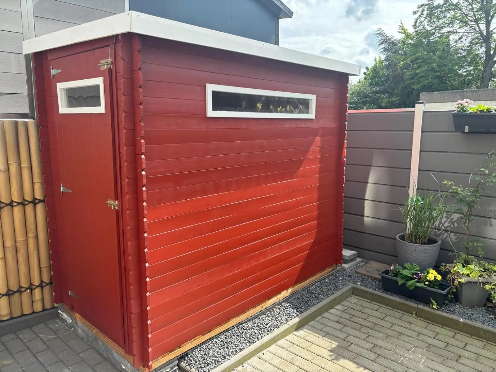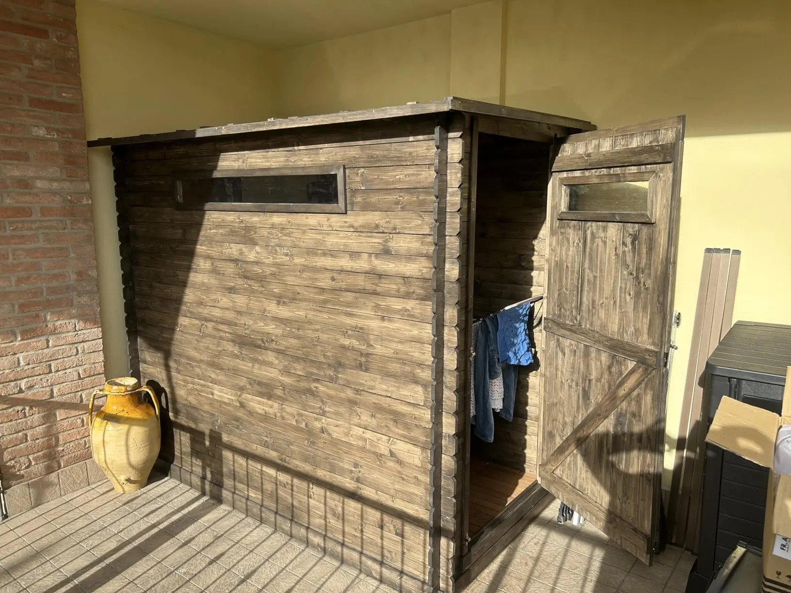 Casetta in legno robusta: il montaggio della casetta ad incastro richiede un po' più di tempo, ma conferisce alla casetta da giardino maggiore resistenza e durata. Montare una nuova casetta sarà un vero piacere per ogni appassionato del fai da te. Grazie alle ampie porte, è facile posizionare oggetti più grandi all'interno della casetta e le finestre in plexiglass forniscono luce naturale.