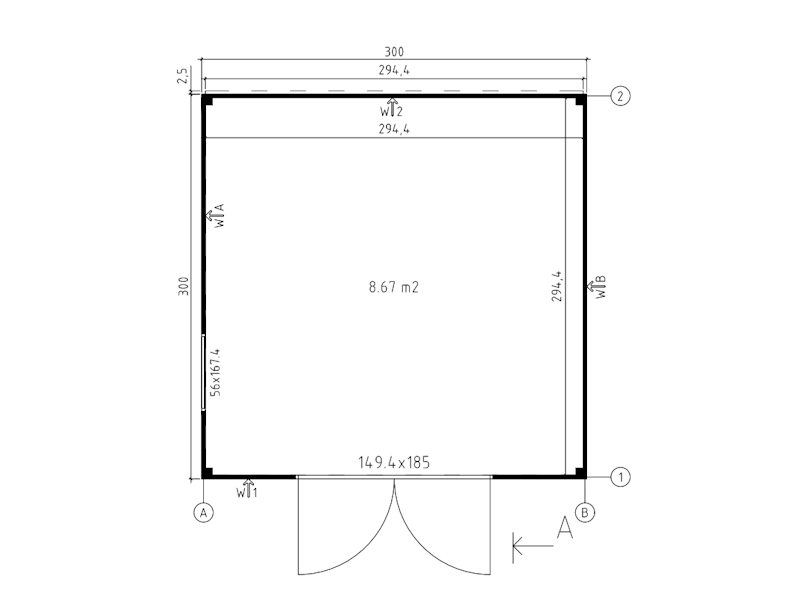 Dimensioni esterne: 300×300 cm (a terra)
