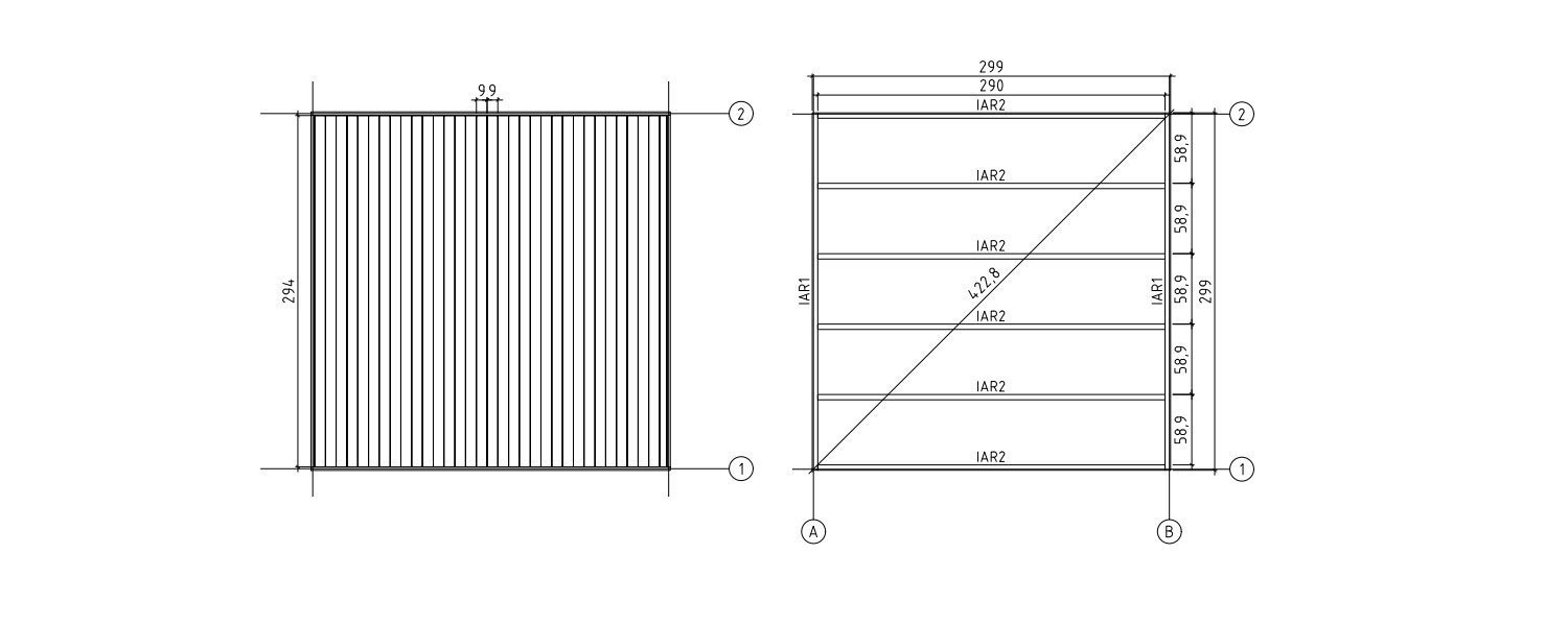 Basamento: Include pavimento e travi di fondazione (45×45 mm) impregnate in autoclave per la massima protezione dall'umidità.