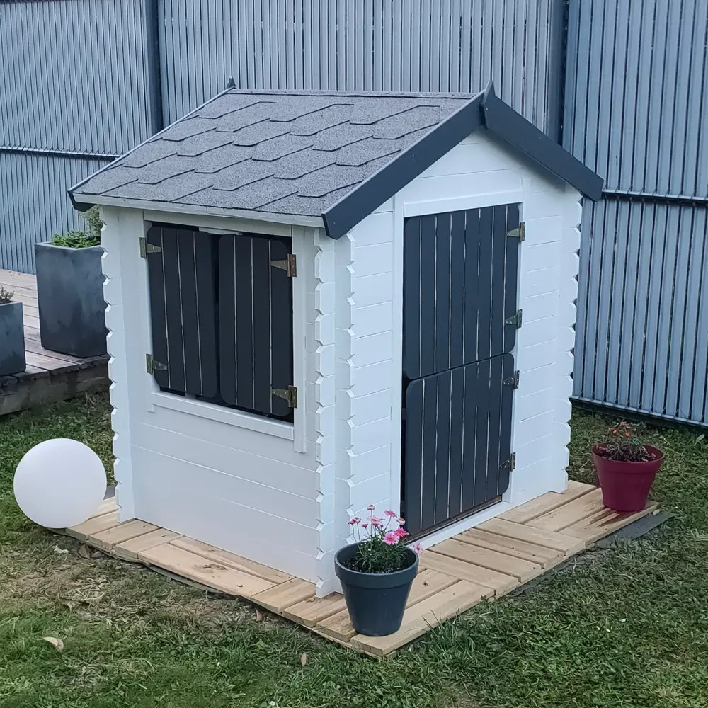 Scelta sicura e certificata: tutte le casette sono realizzate in legno naturale, prive di sostanze nocive e certificate secondo la norma EN-71. L'apertura di finestre e porte con fessure di 15-20 mm tra i telai riduce il rischio di lesioni.