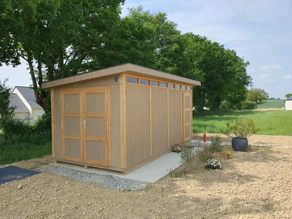 Struttura solida a pannelli: Le pareti sono costruite con un telaio in legno da 60×60 mm e pannelli LP® SmartSide® da 10 mm con superficie primerizzata – per garantire stabilità e durata nel tempo anche con condizioni climatiche avverse.