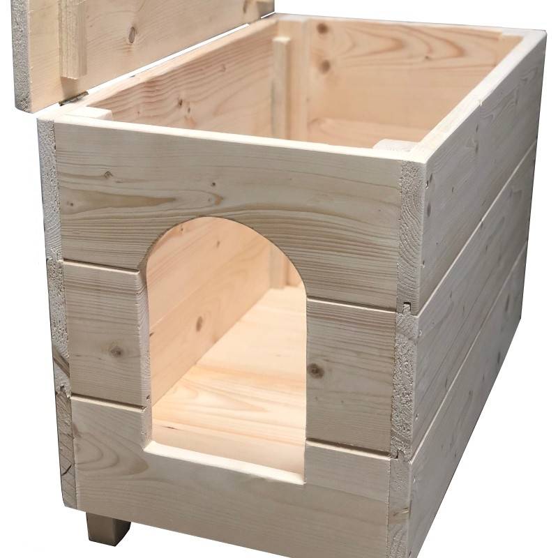 Il foro d'entrata da 16 x 24 cm permette un accesso facile e naturale, mentre la struttura in legno massello crea un ambiente accogliente, caldo e protettivo, perfetto per i momenti di relax del tuo compagno a quattro zampe.