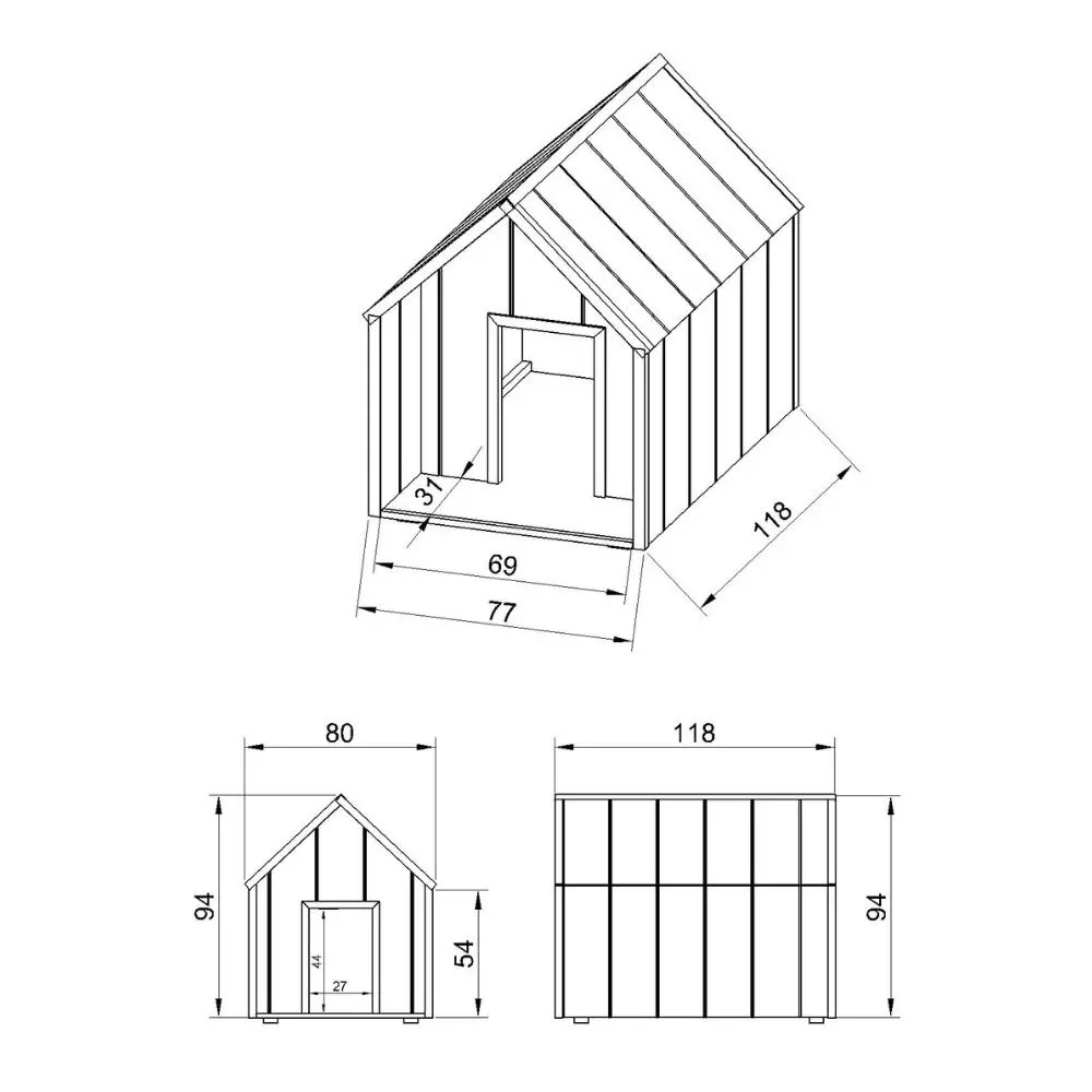 Isolamento termico: I pannelli offrono un'eccellente coibentazione – mantenendo il calore in inverno e la freschezza in estate. A differenza delle cucce in legno tradizionali, non si deformano né si crepano con le variazioni climatiche. I pannelli e le finiture in legno devono essere trattati con vernice acrilica! La cuccia viene fornita non verniciata.