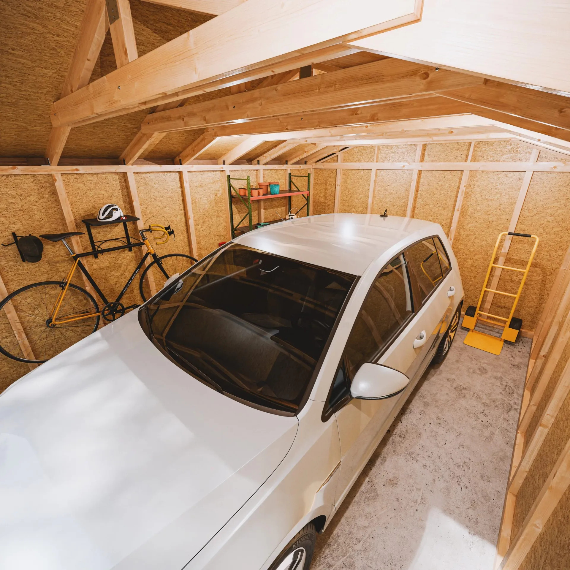 Struttura solida a pannelli: Le pareti sono composte da un telaio in legno da 60×60 mm e pannelli LP® SmartSide® da 10 mm con finitura primerizzata – garantendo stabilità e durata anche in condizioni climatiche difficili.